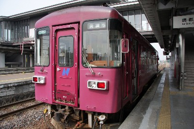 紫色です。車内は結構綺麗で、運転台もぴかぴか。